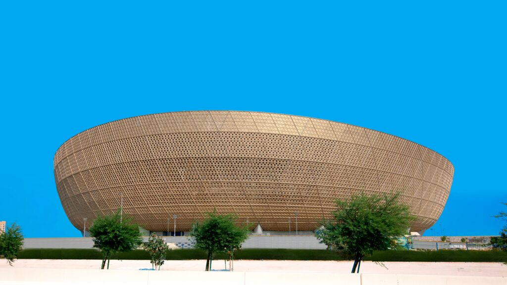 Előre veheted a mérget rá, hogy a magyarul „lószaili” stadion kapcsán lesznek szóviccek a lovak és végtermékük kapcsán. Háromszög elemekkel felépülve, bronz színben pompázik, ha elfeledjük a vendégmunkások ezreinek halálát, akkor egészen szép látványt nyújt a világbajnokság egyik legfontosabb helyszíne. 700 millió euróba került, a nézők hat hídon juthatnak be a nézőtérre, amelyek egy vízzel töltött árok felett futnak. Ahogy az már megszokott, a stadion rejt magában üzleteket, de még hotelt is.